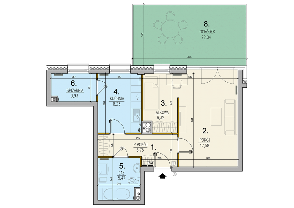 | Ogródek | 22.04 m2 |
