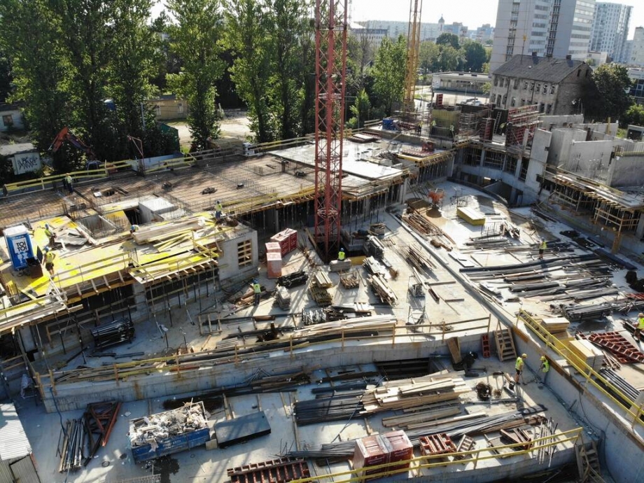 W sierpniu zakończono wykonywanie stropów kondygnacji 2 (piętro 1)